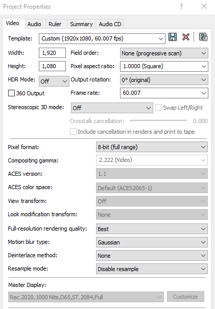 I render in HEVC, 1920×1080 at 59.94fps, then upload.